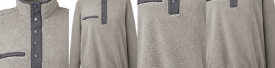 7 oz., 100% polyester Sherpa fleece; 10% spandex dewspo contrast trims; Chest pocket with snap closure; Quarter-length five snap placket; Stretch cuff and waistband; Anti-pill exterior and interior; Anti-static finish; Classic fit;