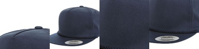 60% cotton / 40% polyester; 5-Panel, Structured, High-Profile, Flat visor; 4" Crown height; 1/4" thick braid on visor ; Matching plastic snap; Medium buckram ; Matching undervisor ;