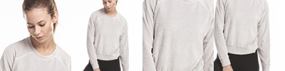 7.6 oz., 80/20 cotton/polyester; Plush velour; White piping detail at raglan seams; Made in USA;